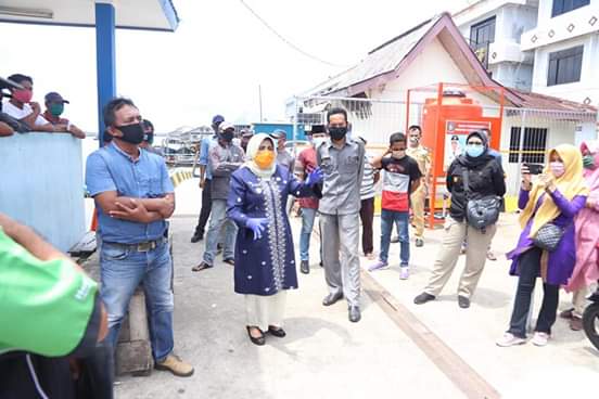 TANJUNGPINANG (MR) - Plt. Wali Kota Tanjungpinang Rahma menemui pekerja di Pelabuhan bongkar muat Sri Payung dan Kawasan Pelantar II Tanjungpinang Kepulauan Riau, Selasa (5/5/2020)