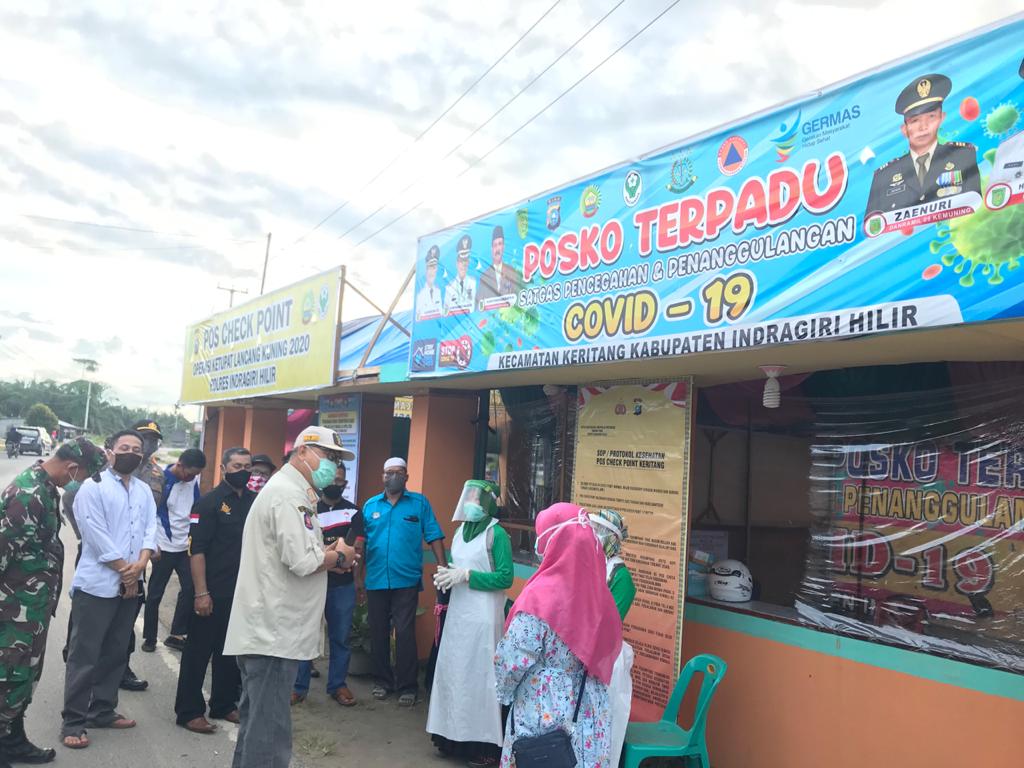 Peninjauan ke sejumlah posko dilaksanakan dengan tujuan untuk mengetahui sejauh mana pengoperasian posko satgas penanganan pencegahan covid-19 di perbatasan, seperti di Posko Kecamatan Kempas, Kecamatan Keritang dan Kecamatan Kemuning.