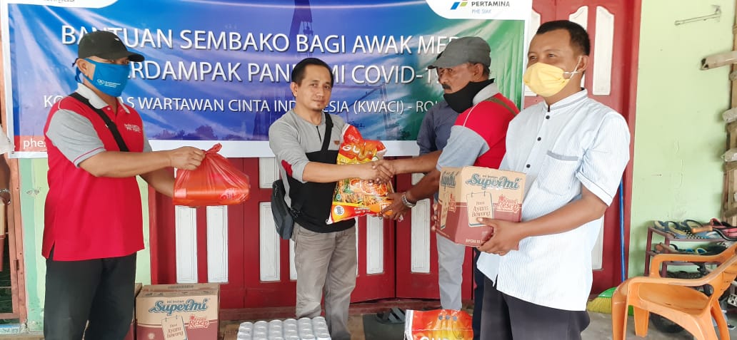 Field Manager PHE Siak, Bomantara Zaelani, yang diwakili Kurniawan Adi Cahyono selaku Siak Field Relation & CID-CIR PHE Siak.mengatakan, Penyerahan bantuan paket sembako kepada awak media yang khusus yang bertugas di Rohi sebagai wujud rasa peduli dan simpati PHE terhadap awak media terdampak pandemi Covid 19 atau kerap disebut Virus Corona," Katanya.