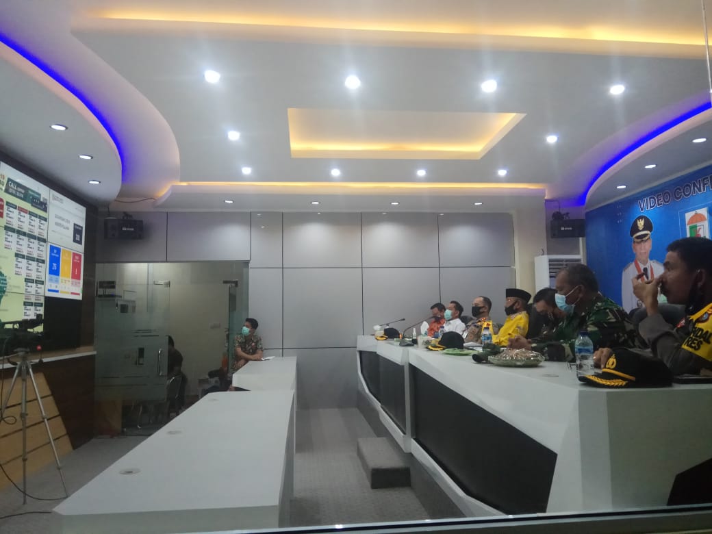 Untuk melaksanakan status tersebut Gubernur Riau Syamsuar langsung mengadakan Vidio Conference dengan Bupati Kabupaten Pelalawan HM Harris bersama Tim Gugus Tugas, di Ruang Pelalawan Command Center (PCC) Kantor Bupati Lantai I, Pangkalan Kerinci, Kamis (28/5/2020).