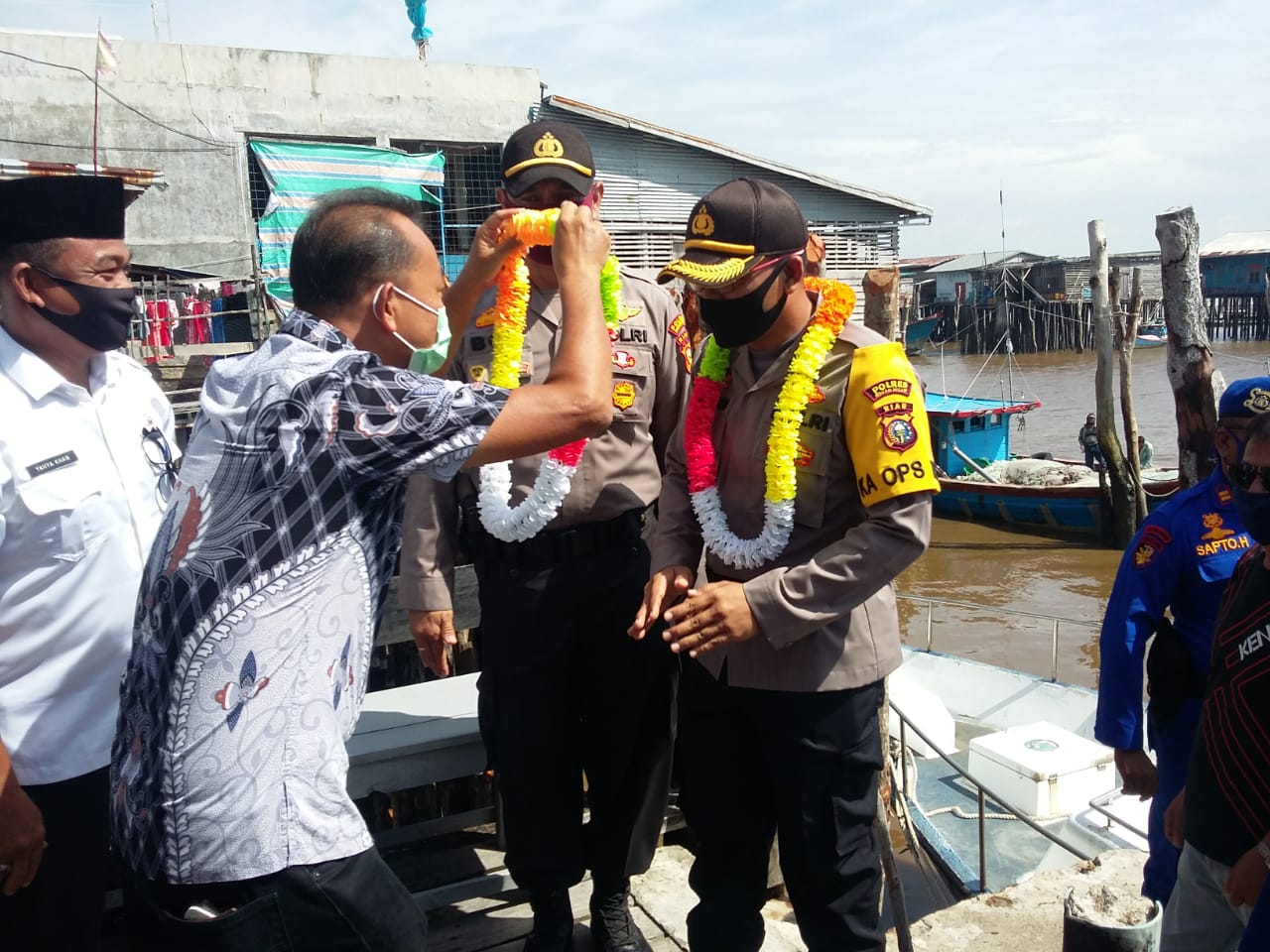 Kedatangan Kapolres beserta rombongan Kasat Sabara AKP Simamora, Kasat Pol Air Ipda Sapto Kasi Provos Ipda L.Simanihuruk disambut Upika Kecamatan, Camat Palika Yahya Khan,Seluruh Datuk Penghulu,Tokoh Masyarakat (Tomas) Obak dan Oliong, Tokoh Agama (Toga), Tokoh Adat (Todat ), Danposal AL Rizal, Danramil di wakili Banbinsa TNI, Perwakilan Bea Cukai PJU Polres beserta masyarakat.