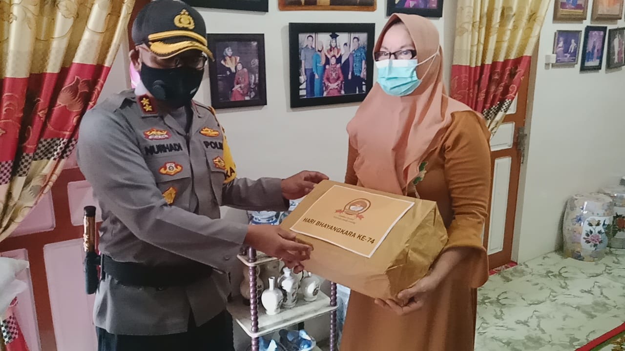 Usai melaksanakan upacara ziarah di makam pahlawan,Kapolres AKBP Nurhadi Ismanto,SH.SIK langsung memberikan bantuan sosial dan anjang sana bersama Ketua Bhayangkari Cabang Rohil Ny.Endah Nurhadi Ismanto dalam rangka Hari Bhayangkara ke 74 tahun 2020.