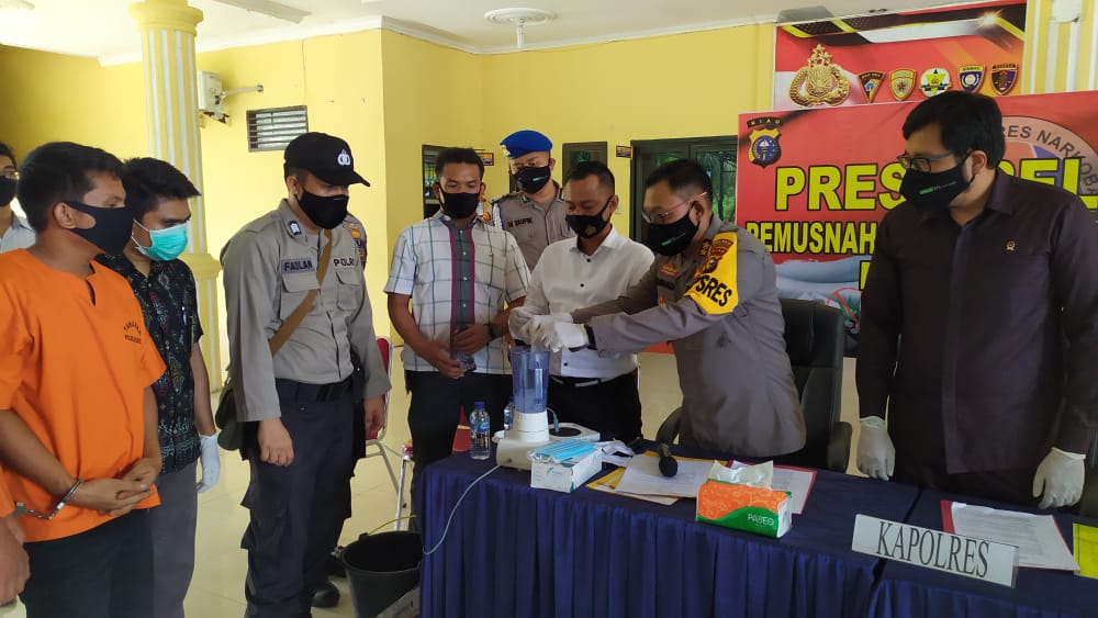 Pemusnahan ini dipimpin langsung Kapolres Rohil AKBP Nurhadi Ismanto SH SIk,bersama Kasat Narkoba AKP Herman Pelani,SH beserta anggota Sat Narkoba,Perwakilan Jaksa dan Pengadilan Negeri Rohil beserta 4 tersangka dengan cara di blender lalu di masukan ke selokan.