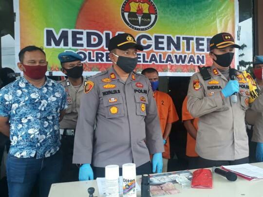 "Pada hari Jumat kemaren kita mendapat informasi ada dua orang yang meminta uang dengan dalih keamanan. Kita langsung turunkan tim dan menemukan kedua pelaku lagi melakukan aksinya. Kita langsung mengamankannya beserta barang bukti dan korban," tuturnya.