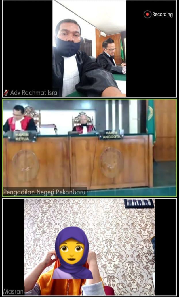 Setelah sebelumnya Penuntut Umum dari Kejaksaan Negeri Pekanbaru membacakan surat dakwaan atas terdakwa Jum alias A pada Tanggal 14 Juli 2020 dengan dakwaan primer melanggar Pasal 80 ayat (3) Juncto Pasal 76 C dan Subsider Pasal 80 ayat ayat (1) Juncto Pasal 76 C UU Perlindungan Anak, persidangan dilanjutkan pada Senin (27/07) di Pengadilan Negeri Pekanbaru dengan agenda pemeriksaan saksi.