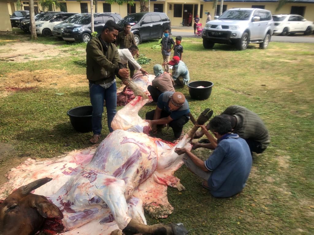 Polres Rohil Gelar Pemotongan 57 Ekor Hewan Qurban