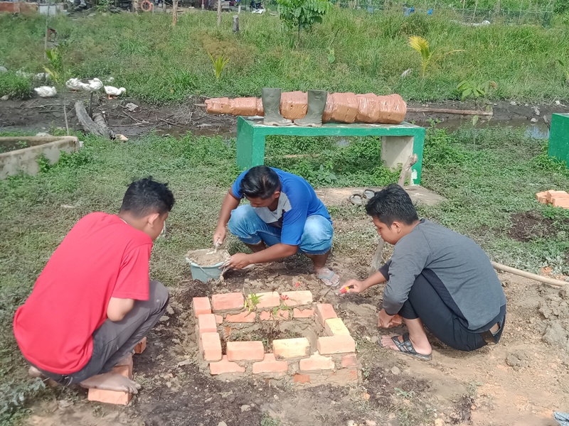 SIAK (MR) – Kamis, 30 Juli 2020, Tim Kukerta Balek Kampung Universitas Riau Kampung Pinang Sebatang Kecamatan Tualang membuat tempat tanaman untuk tanaman hias.