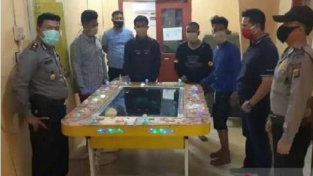 DUMAI (MR) - Unit Reskrim Kepolisian Sektor Bukit Kapur, Polres Kota Dumai, Riau membongkar perjudian berkedok permainan tembak ikan (mirip dingdong) pada salah satu warung warga di tepi Jalan Baru, Kelurahan Bukit Kayu Kapur, dengan empat orang ditangkap, Senin (3/8/2020) kemarin.