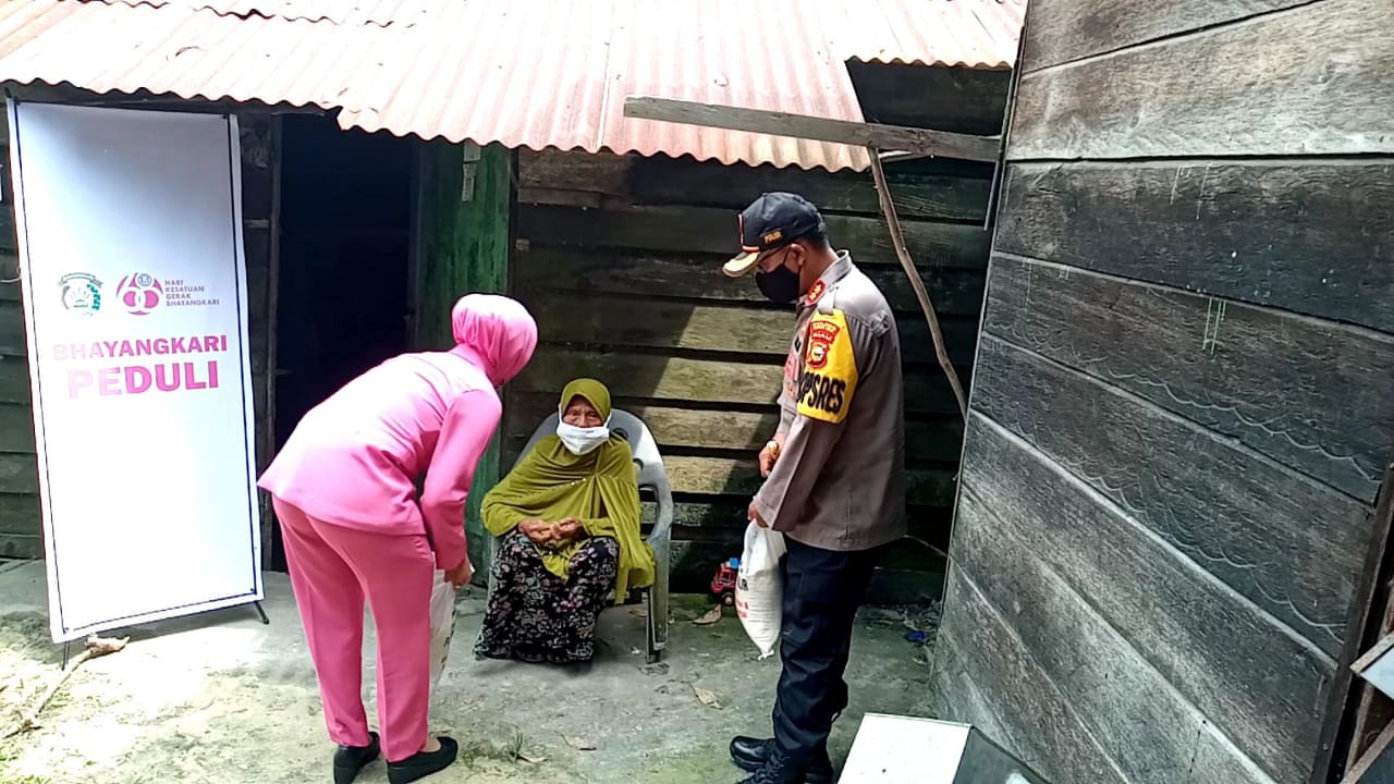UJUNGTANJUNG (MR) - Memperingati Hari Ulang Tahun (HUT) Kemerdekaan Republik Indonesia Ke-75,Polres Rokan Hilir (Rohil) menggelar gerakan Bakti Sosial (Bansos) beserta Bhayangkari Polri Peduli diwilayah hukum Polres Rohil.