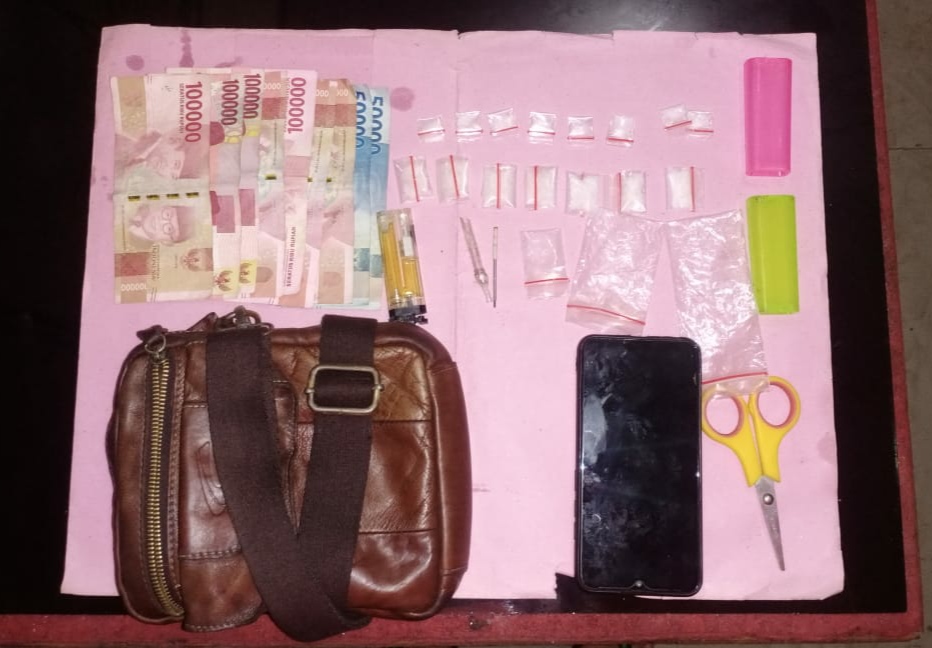 Tersangka Lilik Suprianto Saragih (40) tahun,Warga RT.002,RW.002 Sidomaju Lapangan Desa Tanjung Medan Kecamatan Pujud Rohil,di tangkap saat transaksi narkoba di batang sawit,dengan Barang Bukti 15 bungkus plastik bening klip merah berisikan butiran kristal yang diduga narkotika jenis sabu,1 kotak plastik warna hijau,1 kotak plastik warna merah muda, 3 buah plastik bening klip merah,1 unit HP Merk Vivo Warna hitam, Uang tunai Rp.800 ribu,1 buah gunting warna kuning,1 buah mancis warna kuning,1 buah tas sandang warna coklat,1 buah kaca pirek,1 buah besi untuk kompor.