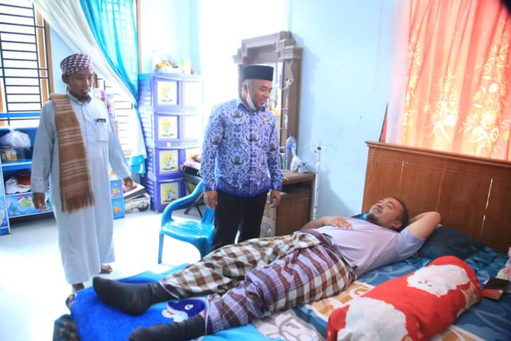 LABUHANBATU (MR) - Bupati Labuhanbatu H.Andi Suhaimi Dalimunthe,STMT di tengah kesibukan menyempatkan diri untuk menjenguk Edy Supriadi salah seorang warga Dusun Sri 2 yang terbaring sakit pada Kamis (17/09/2020) di Kediaman nya Dusun Sri 2, Desa Pematang Seleng, Kecamatan Bilah Hulu.