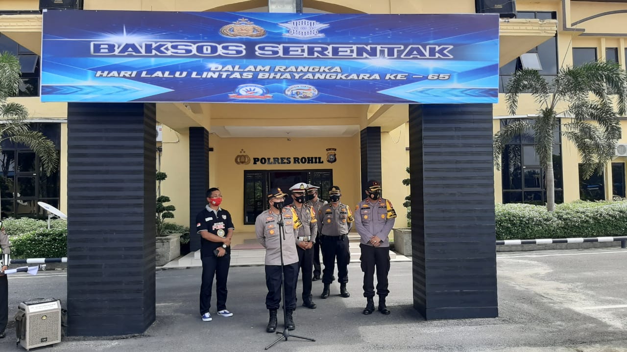 "Pembagian Sembako serta masker ini,dalam rangkaian memperingati HUT Lalu lintas Bhayangkara ke 65,sebagai wujud kepedulian Polri kepada masyarakat khususnya para pengguna jalan di Rohil,Kami berharap apa yang kami berikan ini dapat membantu masyarakat di masa Pandemi Covid-19 ini."Terangnya.