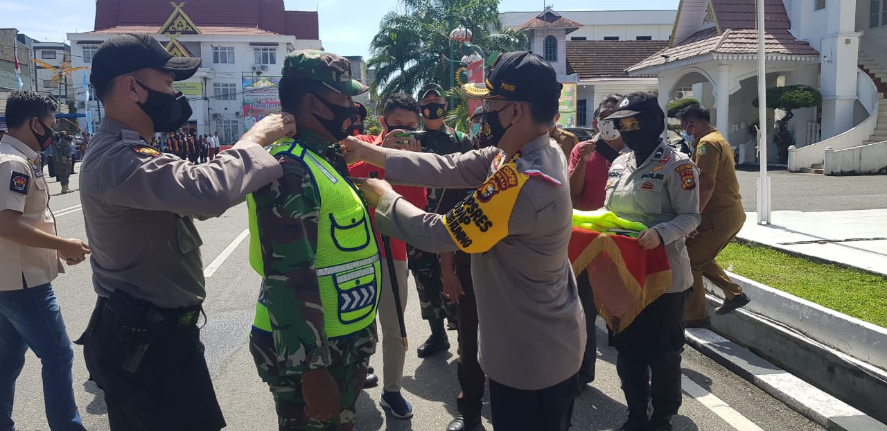 Dalam giat ini,Kapolres bersama perwakilan TNI dan Dinas terkait melakukan pemasangan rompi pemburu Teking Covid 19 kepada personil Polri,TNI,Satpol PP,Dishub dan BPBD Rohil serta langsung melakukan Pengawasan,Patroli,