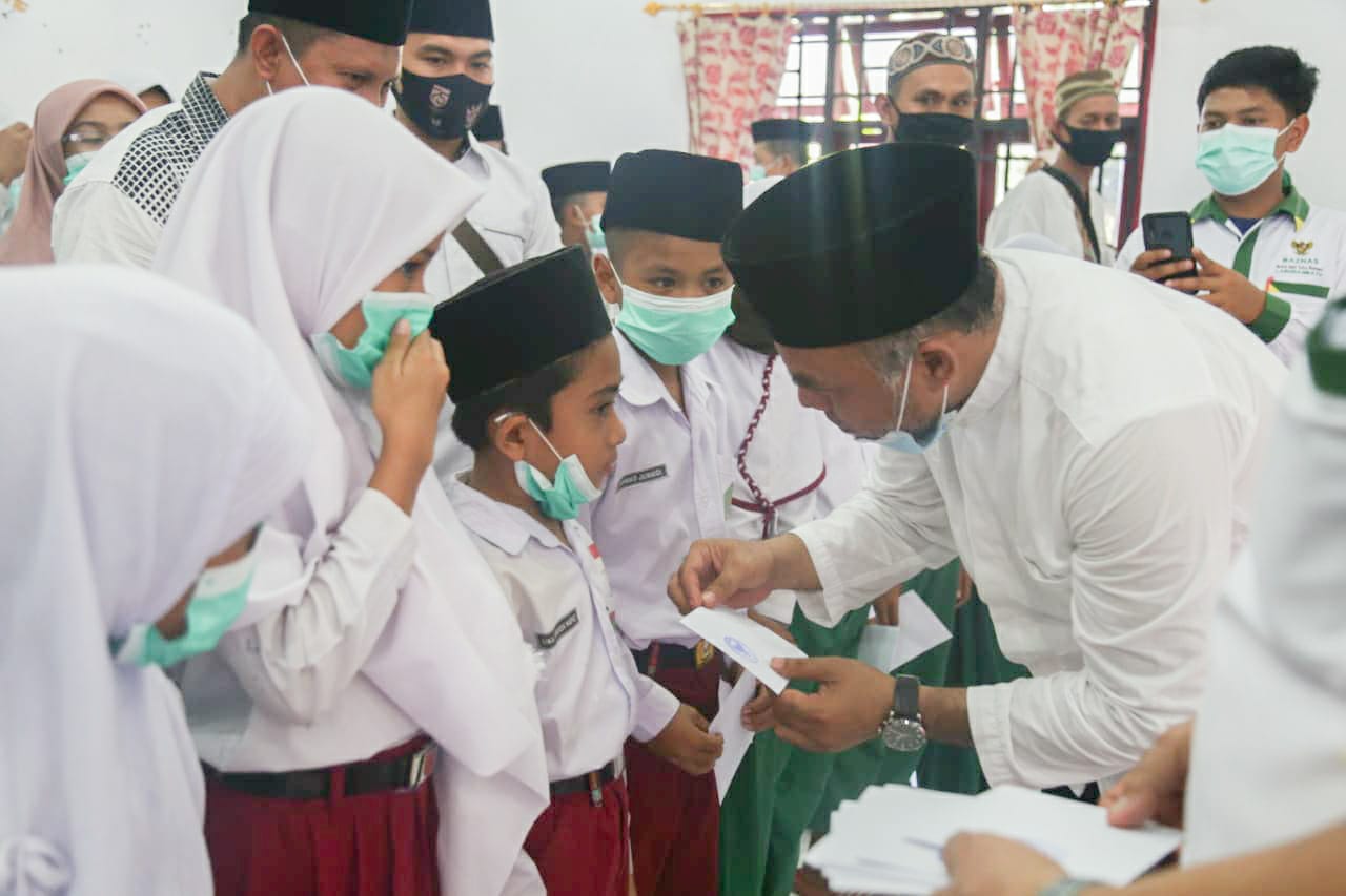 LABUHANNATU (MR) - Bupati Labuhanbatu H.Andi Suhaimi Dalimunthe, ST.MT menyerahkan secara simbolis Zakat dan Infaq dari Badan Amil Zakat Nasional (BAZNAS) Labuhanbatu kepada masyarakat kecamatan Panai Hilir, Panai Hulu dan Panai Tengah di aula kantor Kelurahan Labuhanbilik, Kecamatan Panai Tengah pada Rabu (23/09/2020).