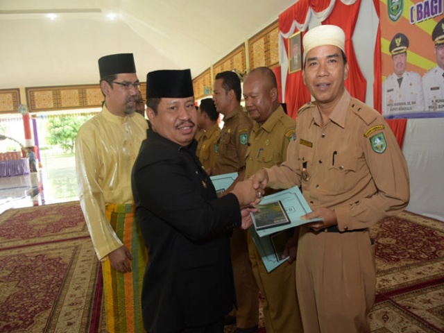BENGKALIS (MR) - Bupati Bengkalis Amril Mukminin, Senin (19/12/2016) menyerahkan aplikasi Sistem Keuangan Desa (SISKEUDES) dan pagu indikatif dana transfer yang akan diterima desa pada tahun anggaran 2017, kepada Kepala Desa se-Kabupaten Bengkalis.