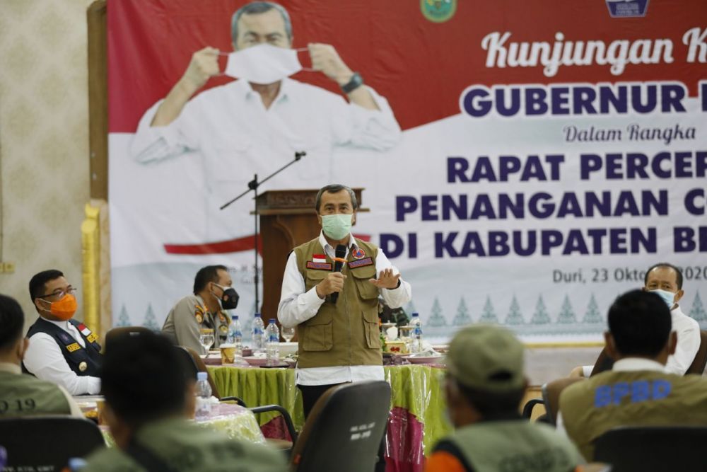 “Kasus positif di Riau masih terus bertambah, untuk itulah perlu kita turun ke daerah untuk memastikan penanganan Covid-19. Hari ini (kemarin red), kita rapat koordinasi bersma Satgas penanganan Covid-19 Bengkalis. Apalagi Kabupaten Bengkalis sekarang masuk dalam zona merah, resiko tinggi. Oleh karena itu kita sudah tau persoalannya terutama yang sekarang mayoritas di Kabupaten Bengkalis diwilayah ini Mandau,” ujar Gubri, Syamsuar.