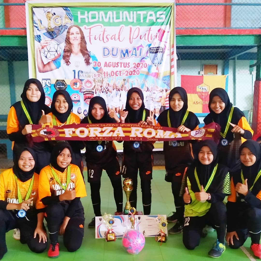 DUMAI (MR) - Tim Futsal Putri, Romanita Primavera berhasil menyabet gelar juara liga Futsal Komunitas Futsal Putri Dumai (KFPD) U-18 tahun 2020.