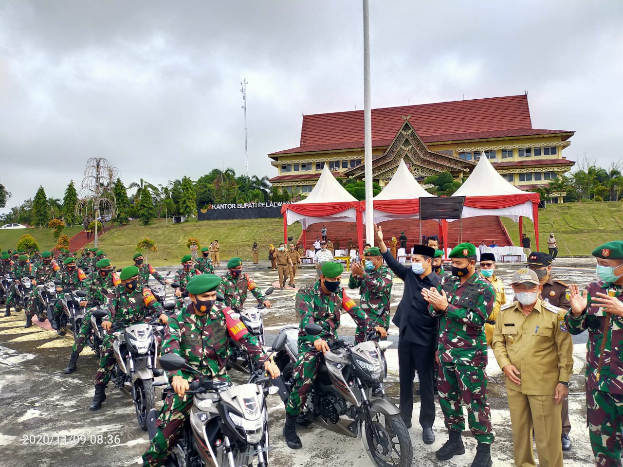 PANGKALAN KERINCI (MR) - Pemerintah Kabupaten (Pemkab) Pelalawan, Riau, memberikan bantuan hibah berupa 110 Unit kendaraan roda dua merek Suzuki Bandit GSX-150 dalam rangka penugasan pengamanan Pemilihan Kepala Daerah (Pilkada) Tahun 2020, bertempat di Halaman Kantor Bupati Pelalawan, Senin (9/11) pagi.
