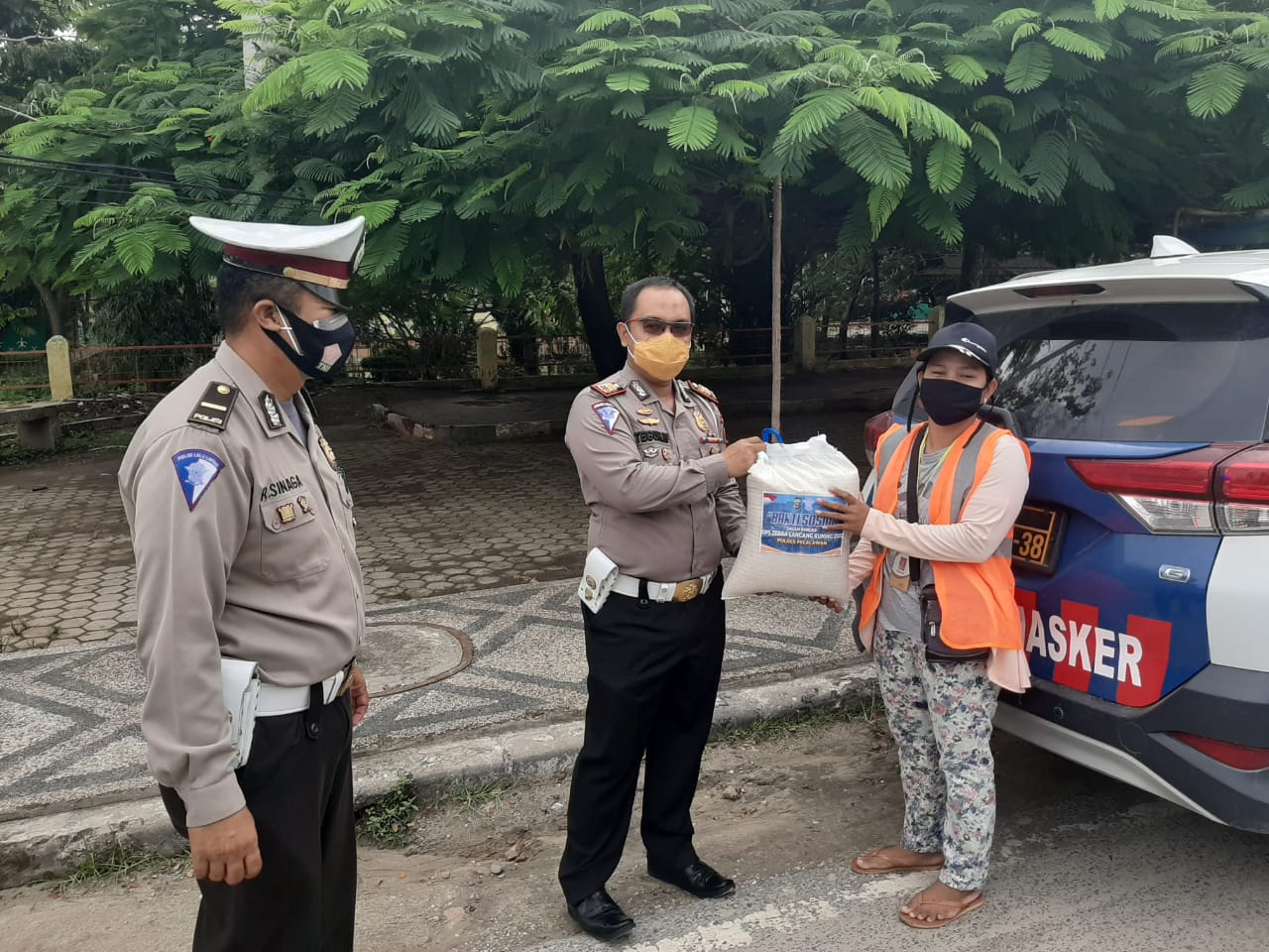 Dijelaskannya lagi, untuk bantuan sosial berupa barang kebutuhan sehari-hari (sembako) diberikan kepada warga yang terdampak pendemi Covid19, sedangkan bantuan masker diberikan kepada tukang parkir, petugas kebersihan, dan petugas jaga masjid, di seputaran Pasar Baru dengan sistem patroli.