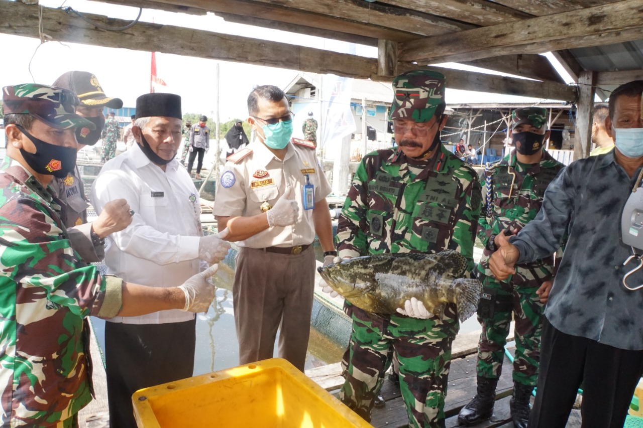 TANJUNGPINANG (MR) – Sebagai wujud pelaksanaan Ketahanan Pangan Sektor Laut di lingkungan TNI Angkatan Laut, Komandan Pangkalan Utama TNI Angkatan Laut (Danlantamal) IV Laksamana Pertama TNI Indarto Budiarto, S.E., M.Han., bersama Kepala Dinas Pertanian, Pangan dan Perikanan Kota Tanjungpinang dan Provinsi Kepri, Kepala Balai Karantina Ikan Pengawasan Mutu, menggelar Panen Raya Ikan Kerapu di Kampung Bahari Nusantara Tanjung Lanjut Kampung Bugis Kepri, Rabu pagi (11/11/2020)