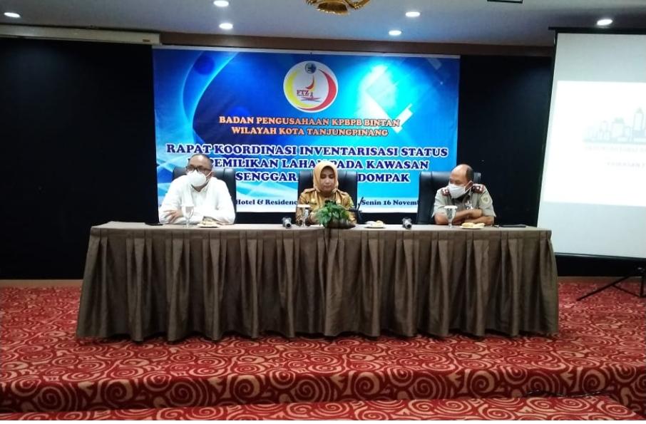 TANJUNGPINANG (MR) - Badan Pengusahaan Kawasan Perdagangan Bebas dan Pelabuhan Bebas Bintan wilayah Kota Tanjungpinang, Kepulauan Riau menggelar rakor Inventarisasi status kepemilikan lahan pada kawasan Free Trade Zone (FTZ) Dompak dan Senggarang, di Ballroom Hotel Comforta, Senin (16/11/2020).