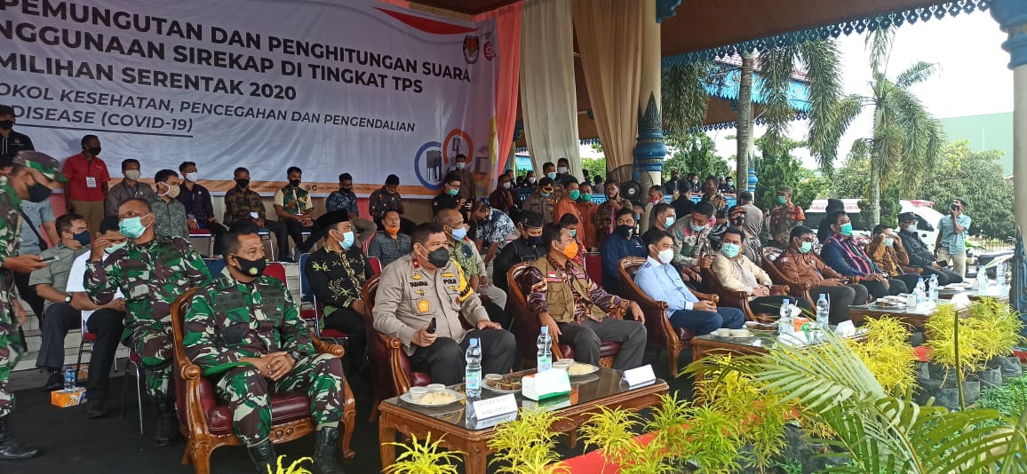 Terlihat simulasi dhadiri seluruh Pimpinan PPK SE Kabupaten Pelalawan, Sekretaris Daerah Kabupaten (Setdakab) Pelalawan Tengku Mukhlis, Asisten I Kantor Gubernur Riau Henri Salmon Ginting, Wakapolda Brigjend Pol Tabana Bangun, Kasi Ops KOREM 031/WB Letkol Inf Joko, Wakil Ketua DPRD Riau Hardiyanto, Ketua KPU Riau Firdaus SH, Ketua Bawaslu Riau Rusidi Rusdan M.Pdi, Forkopimda Kabupaten Pelalawan, Pimpinan OPD Kabupaten Pelalawan.