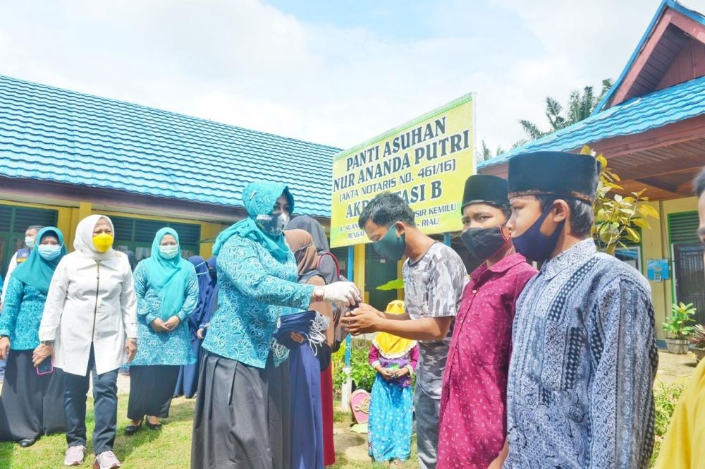 TP PKK Provinsi Riau Serahkan 10.000 Masker Kain dan Sembako di Inhu