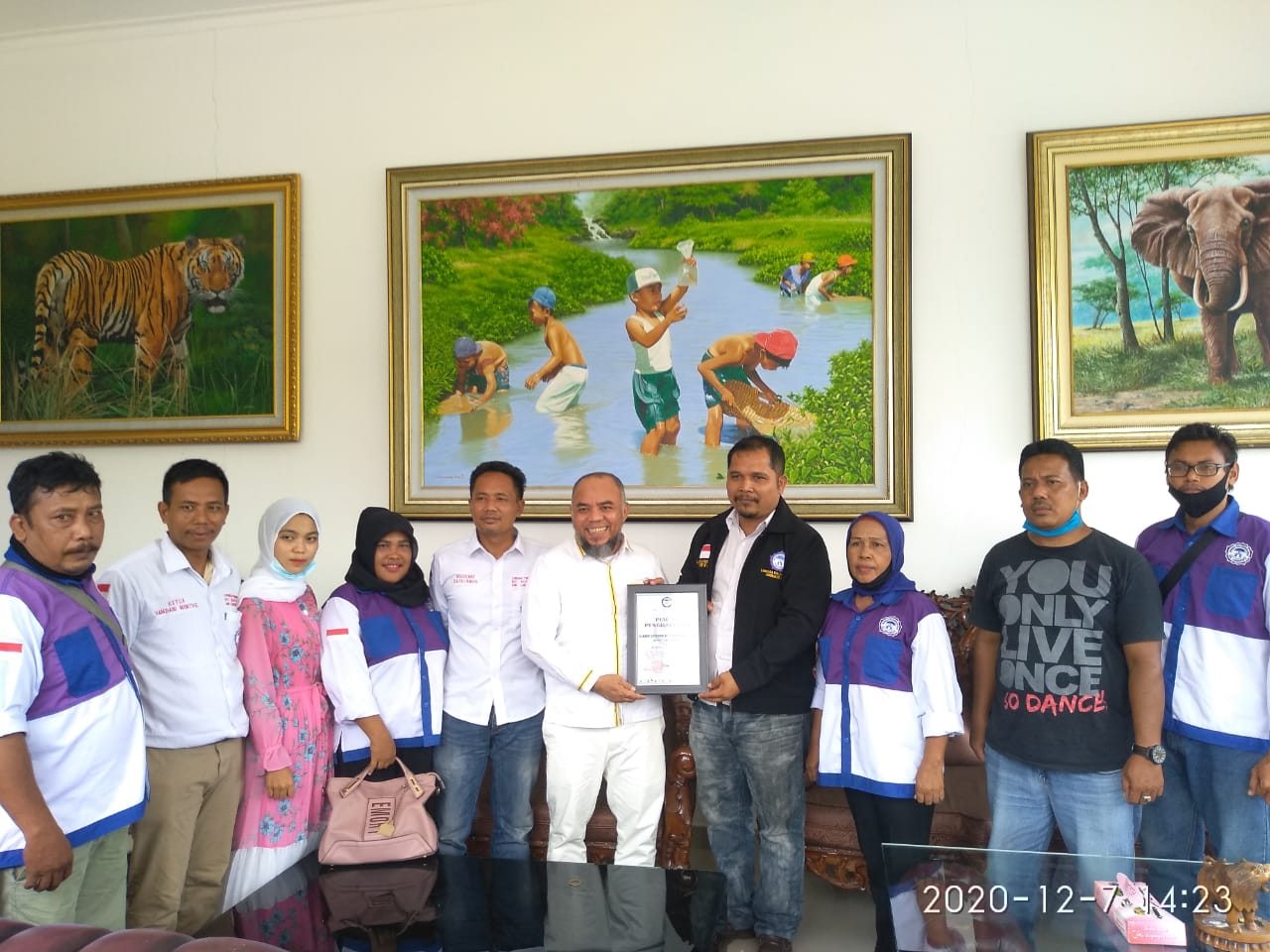Dalam kunjungan LPA Labuhanbatu tersebut, Bupati Labuhanbatu H Andi Suhaimi Dalimunthe menerima penghargaan yang diberikan langsung oleh Ketua LPA Labuhanbatu Muhammad Azhar Harahap. Usai menerima penghargaan, dilanjutkan foto bersama. (anditan)