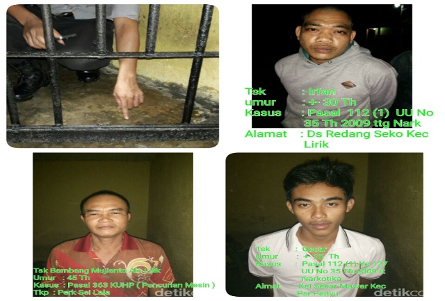 Demikian disampaikan, Humas Polres Inhu, Iptu Yarmen Djambak, Selasa, 27 Desember 2016. Yarmen menjelaskan, tiga tahanan yang kabur itu adalah, Bambang (45) kasus pencurian. Irfan (34) kasus narkoba dan Oskar (21) kasus narkoba.