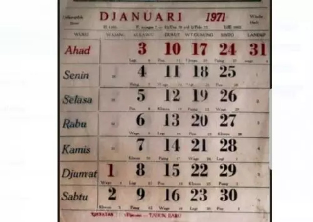 Viral! Kalender Jadul 1971 Bisa Dipakai di Tahun 2021
