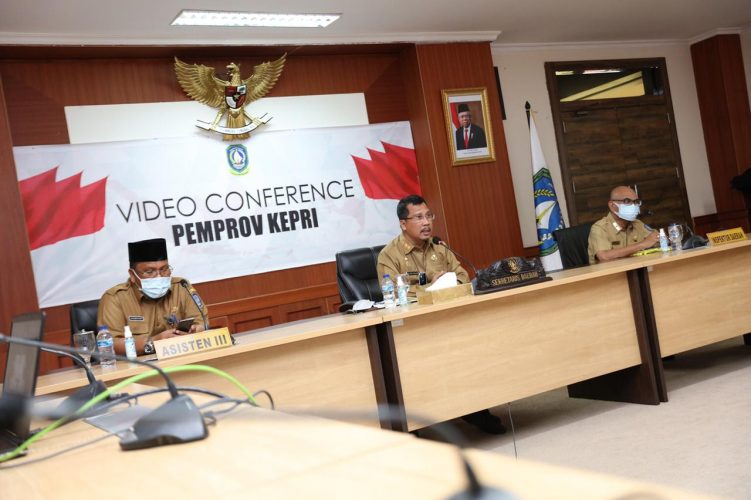 TANJUNGPINANG (MR) - Sekdaprov Kepri H. TS. Arif Fadillah mengikuti Video Conference Rapat Koordinasi dan Supervisi Pencegahan Korupsi terkait Pengamanan Aset Kepri bersama Tim Satgas I Direktorat Koordinasi Supervisi KPK RI dari Ruang Rapat Utama Lantai IV, Kantor Gubernur Kepulauan Riau, Dompak, Tanjungpinang, Senin (08/02).