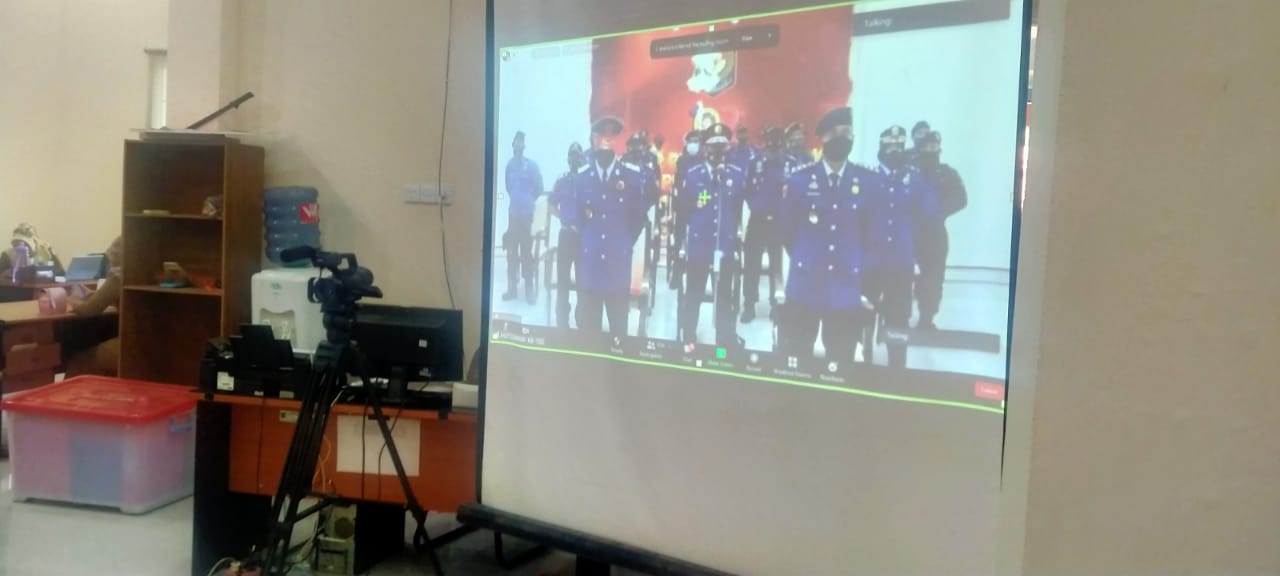 DUMAI (MR) - Dalam rangka memperingati Hari Ulang Tahun (HUT) Pemadam Kebakaran dan Penyelamatan tanggal 1 Maret 2021 yang menginjak usia ke 102 tahun, Pemadam Kebakaran (DAMKAR) Kota Dumai menggelar Upacara serentak secara Nasional melalui Zoom Virtual Di Kantor Badan Penanggulangan bencana Daerah (BPBD)