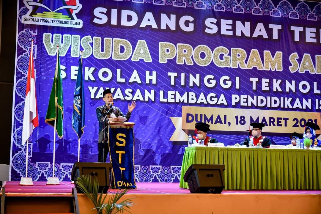 Beliau berharap kepada wisudawan dan wisudawati agar tetap berkomitmen untuk memberikan kontribusi nyata bagi perusahaan-perusahaan yang ada di Indonesia terutama di Kota Dumai.