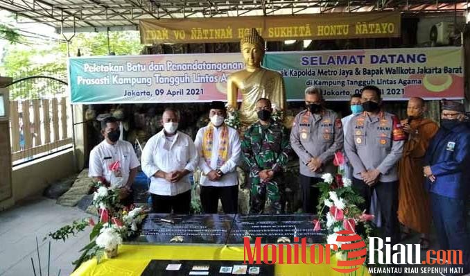 Penandatanganan prasasti dan peletakan batu pertama Kampung Tangguh Lintas Agama dilakukan oleh Dir Binmas Polda Metro Jaya Kombes Badya Wijaya, Kapolres Jakbar Kombes Ady Wibowo, Wali Kota Jakbar Uus Kuswanto, Ketua Umum GMRI Eko Sriyanto Galgendu bersama tokoh lintas agama.