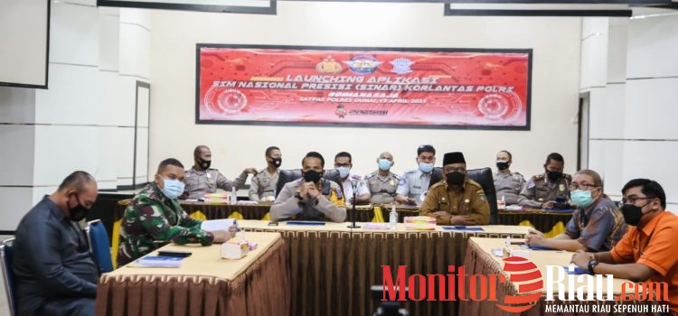 DUMAI (MR) – Walikota Dumai dalam hal ini yang diwakili oleh Asisten Administrasi Umum H. Khairil Adli menghadiri launching Aplikasi SINAR (SIM Presisi Nasional) yang bertempat di Gedung Citra Waspada Polres Dumai, Selasa (13/04/2021).