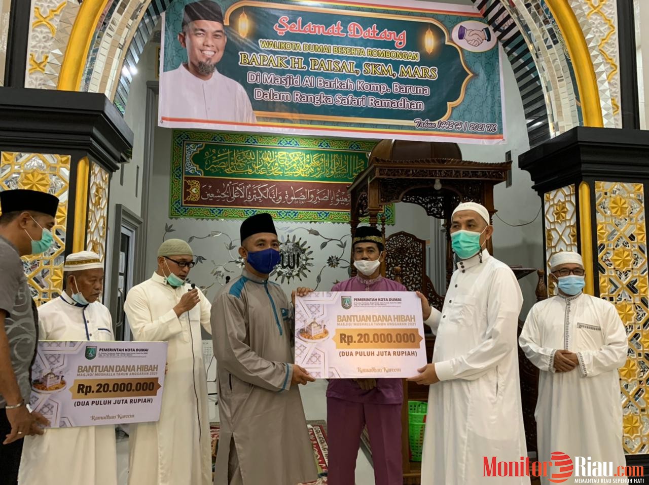 DUMAI (MR) - Mengawali safari ramadhan 1442 Hijriah yang dilaksanakan Pemerintah Kota (Pemko) Dumai, Wali Kota Dumai, H. Paisal, SKM, MARS beserta rombongan mengunjungi Masjid Al-Barkah, Jalan Baruna Raya, Kelurahan Bukit Datuk, Kecamatan Dumai Selatan, Rabu malam (14/4/2021).