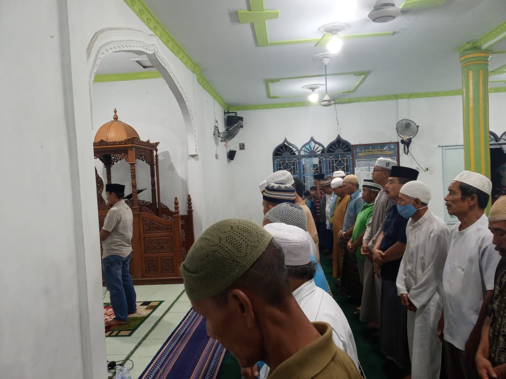 DUMAI (MR) - Pengurus dan Jemaah Masjid Nurruddin yang ada di Gang Tapian Nauli RT 05 Kelurahan Teluk Binjai Kecamatan Dumai Timur melakukan Shalat ghoib untuk mendoakan almarhum Wakil Wali Kota Dumai Amris, S.Sy di Masjid Nuruddin.
