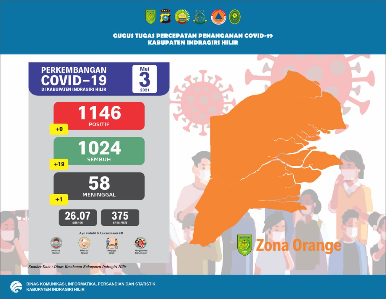 Menurut Bupati, diperlukan pengetatan protokol kesehatan di Kabupaten Inhil untuk mengendalikan angka Covid-19 yang mengalami kenaikan dengan cara melaksanakan kegiatan patroli rutin. Apalagi dengan lonjakan kasus Covid-19 saat ini, membuat status Kabupaten Inhil bergeser ke zona oranye.