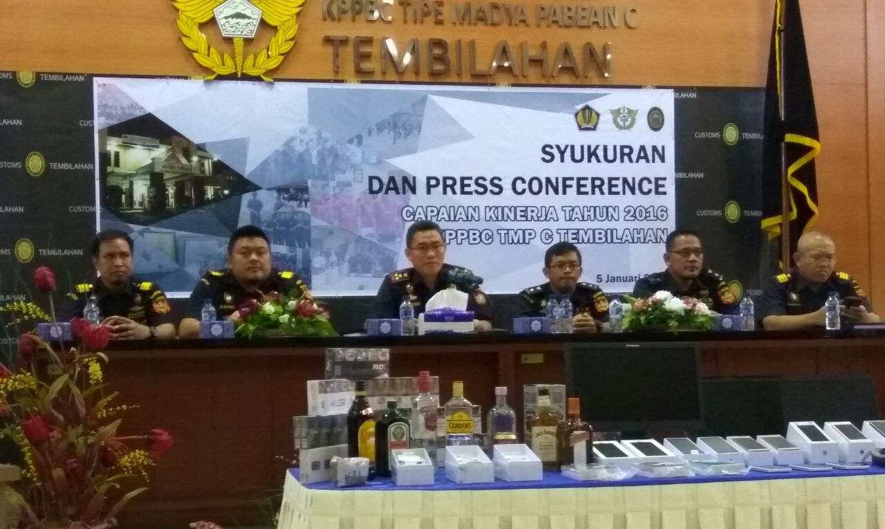 Pernyataan tersebut disampaikan langsung oleh Kepala KPPBC Tipe Madya Pabean C Tembilahan, Sulaiman saat konferensi pers di Aula KPPBC TMP C Tembilahan jalan Jendral Sudirman, Kamis (5/1/2017).
