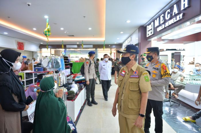 Saat memonitor pengunjung plaza dari lantai dua. Syamsuar meminta kepada manajemen yang turut menyambutnya saat itu, agar menegakan Protokol Kesehatan (Prokes).
