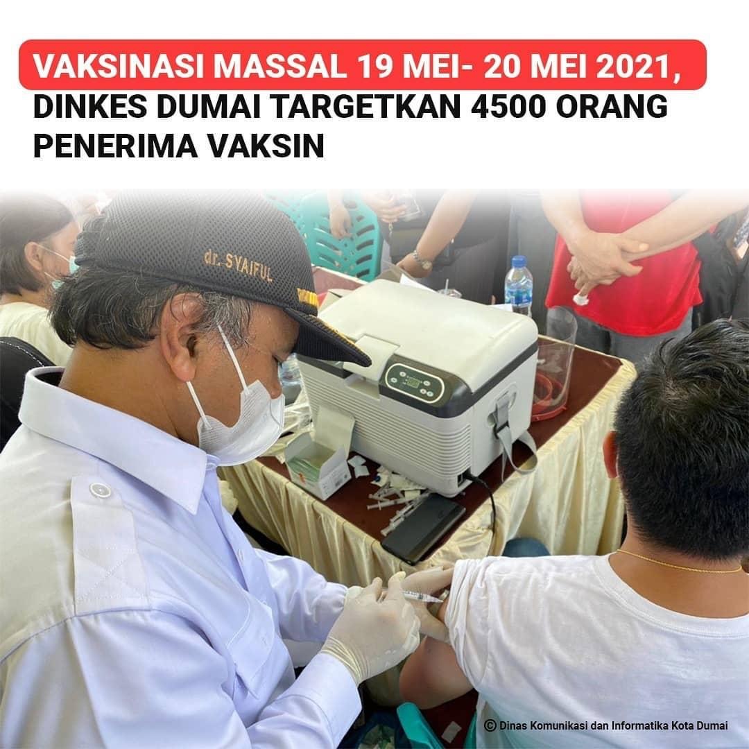 "Kegiatan ini dilaksanakan selama 2 hari, yaitu pada tanggal 19 dan 20 Mei dengan total sasaran berjumlah 4500 orang. Target hari ini (Rabu) berjumlah 2500 orang dan 2000 orang pada hari ke dua (Kamis)," kata Plt. Kepala Dinas Kesehatan Kota Dumai, dr. Syaiful.