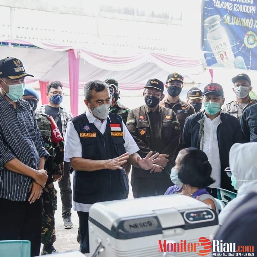 Gubernur Riau H. Syamsuar mengatakan bahwa kedatangannya untuk mengecek persiapan pelaksanaan Vaksinasi Covid-19 sekaligus upaya untuk menurunkan konfirmasi positif yang ada di Kota Dumai.