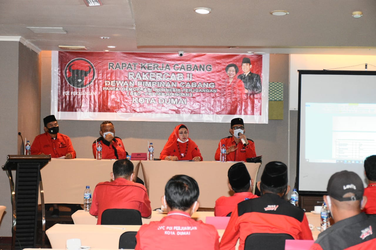 DUMAI (MR) - Dewan Pimpinan Cabang Partai Demokrasi Indonesia Perjuangan (DPC PDIP) Kota Dumai menggelar Rapat Kerja Cabang (Rakercab) di Hotel Grand Zuri Kota Dumai, Minggu (30/05/2021).