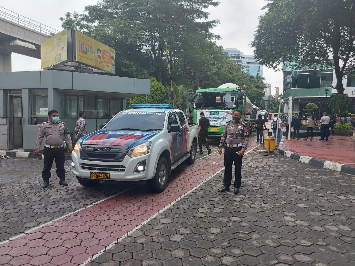 PEKANBARU (MR) - Kepolisian Daerah (Polda) Riau pada Jumat (9/7/2021) secara khusus mengutus tim mengawal pengiriman oksigen yang merupakan bantuan dari perusahaan Riau Andalan Pulp And Paper (RAPP) yang diperuntukkan sebagai bantuan Pengobatan Covid-19 dengan tujuan kantor Kementrian Perindustrian Jakarta Pusat.