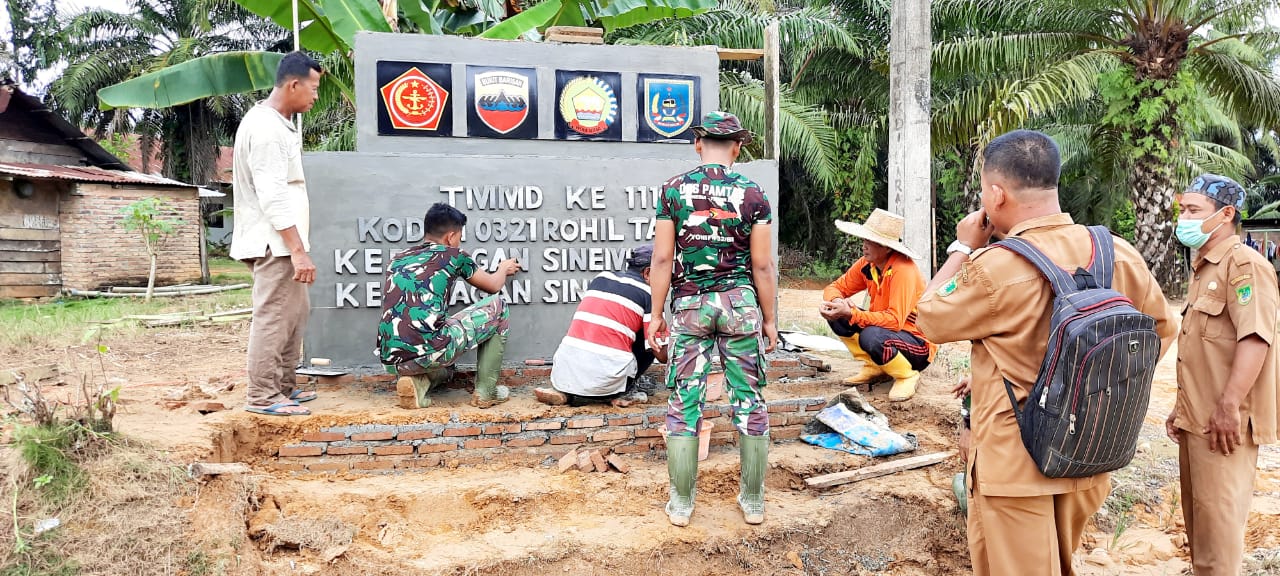 Dalam kesempatan itu Penghulu Bagan Sinembah Jaya, Saiful yang berada di lokasi pembangunan tugu TMMD mengaku puas atas pencapaian program TMMD ke-.111 di Kepenghuluannya. (Wisman)