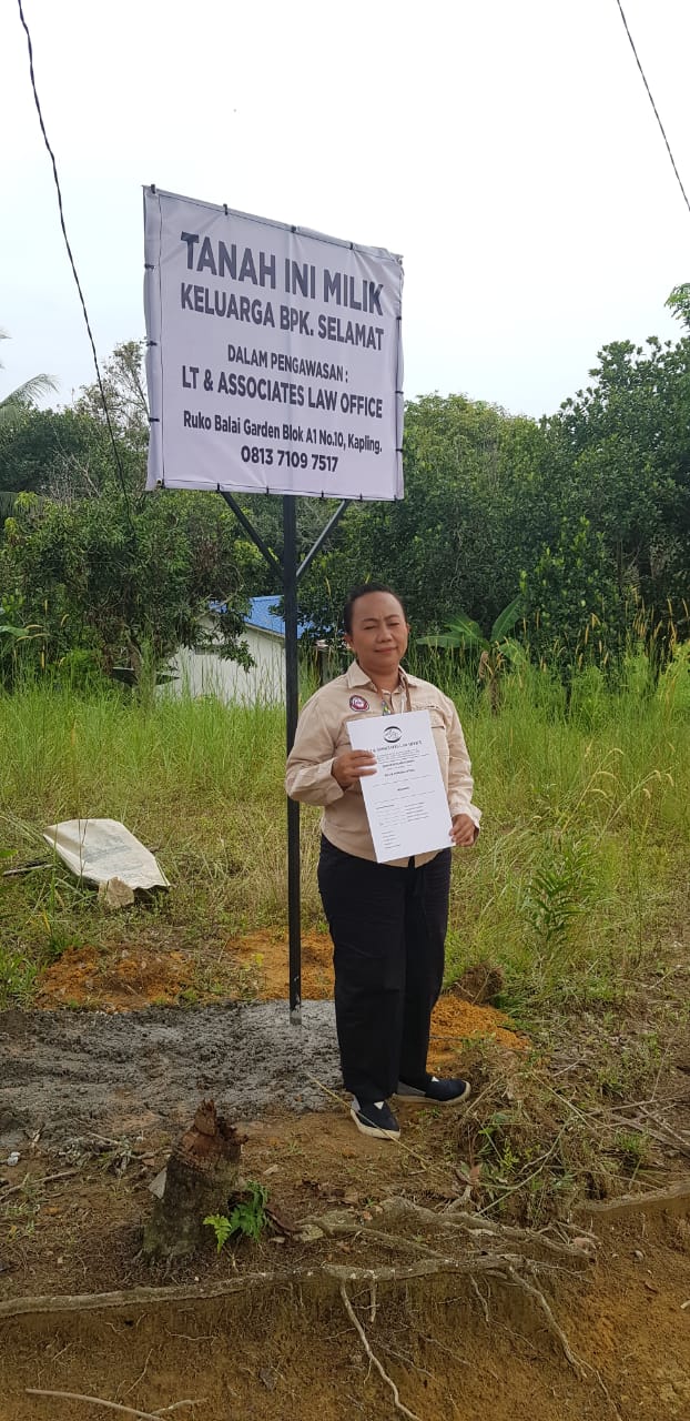 "Jadi kegiatan untuk hari ini saya sebagai kuasa hukum dari keluarga Pak Selamat melakukan pemasangan plang tanah dalam pengawasan, bahwa tanah tersebut milik klien kami. Kegiatan kami di sini upaya penyelamatan milik Pak Selamat," ujar Advokat Linda Theresia SH CLA CTA sekaligus Direktur LBH SADO ini, kepada wartawan.