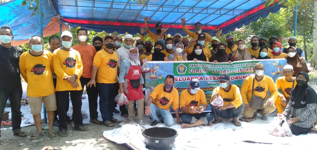 LINGGA (MR)- Keluarga besar forum 77 Kecamatan Singkep Kabupaten Lingga melaksanakan kegiatan pemotongan hewan kurban pada Kamis 22 Juli 2021 pagi.