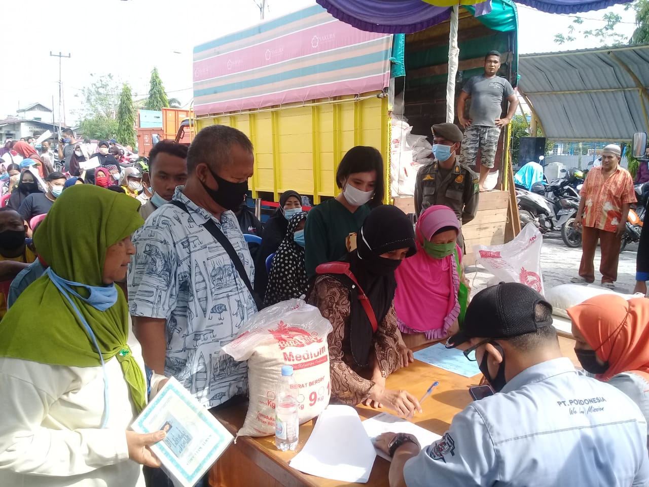 Disamping menerima BST, masyarakat juga mendapat bantuan beras 10 KG/keluarga yang disalurkan oleh Kantor Bulog Cabang Dumai yang merupakan bantuan Pemerintah Pusat dalam suasana Pemberlakuan Pembatasan Kegiatan Masyarakat (PPKM).
