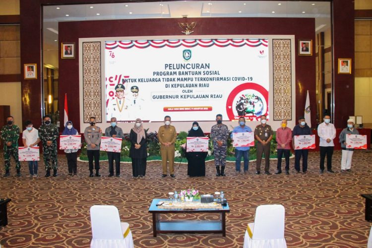 TANJUNGPINANG (MR) - Pemerintah Provinsi Kepulauan Riau terus berupaya untuk meringankan beban ekonomi yang dirasakan masyarakat akibat dari pandemi Covid-19. Salah satu upaya tersebut adalah peluncuran Program Bantuan Sosial untuk Keluarga Tidak Mampu yang terkonfirmasi Covid-19 di Kepulauan Riau. Gubernur Kepulauan Riau H. Ansar Ahmad secara resmi meluncurkan program ini dari Aula Wan Seri Beni, Dompak, Tanjungpinang, Senin (9/8).