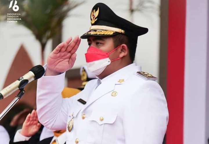 TANJUNGPINANG (MR) - Gubernur H. Ansar Ahmad bertindak sebagai Inspektur Upacara pada Upacara Bendera Peringatan HUT Ke 76 Kemerdekaan RI Tingkat Provinsi Kepri Tahun 2021 dari Halaman Gedung Daerah Provinsi Kepri Tanjungpinang, Selasa (17/8). Upacara ini dilaksanakan secara luring dan daring lantaran pandemi Covid-19 yang masih melanda dan dimulai pukul 07.30 pagi.